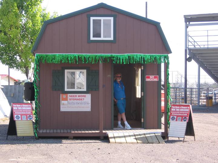 Teamed up with a local shed/garage/building dealer (that's him in the photos in blue!) and we did a guaranteed promotion with a safe - that's it on the media cart - and each day of the fair everyone was invited to enter their code onto the keypad for a chance to unlock the safe and win the insulated building. Building value was around $15,000 and included delivery anywhere in our county for free (we're in the 9th largest geographic county in the U.S.) and we got to use the cabin to broadcast live for "Eight Days of Awesome" from the fair.